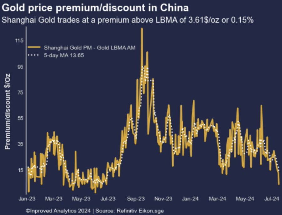 2,上海金取引所(SGE)での金のプレミアムは縮小し、中国の金需要が依然として低迷?その理由は?