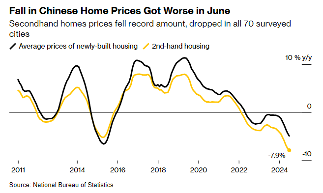 中国住宅価格も過去最低レベルで下落。欧米諸国がインフレで苦しんでいるのとは逆に中国はデフレで経済が停滞している状態です。