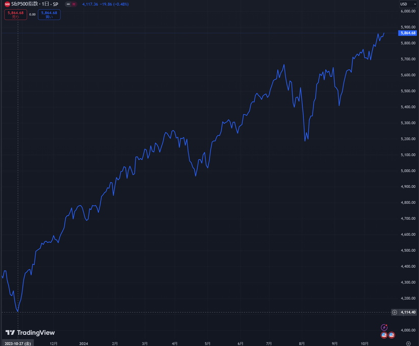 こちらはS&P指標。約4112から5864への上昇は約42.6%。
