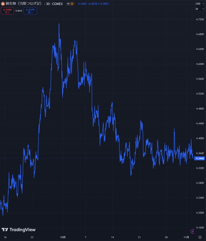 銀の価格上昇要素である銅に関しては横ばいです。