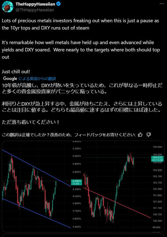 利回りとDXYが急上昇している中で、貴金属がこれほどよく持ちこたえ、さらには上昇しているのは驚くべきことだ。