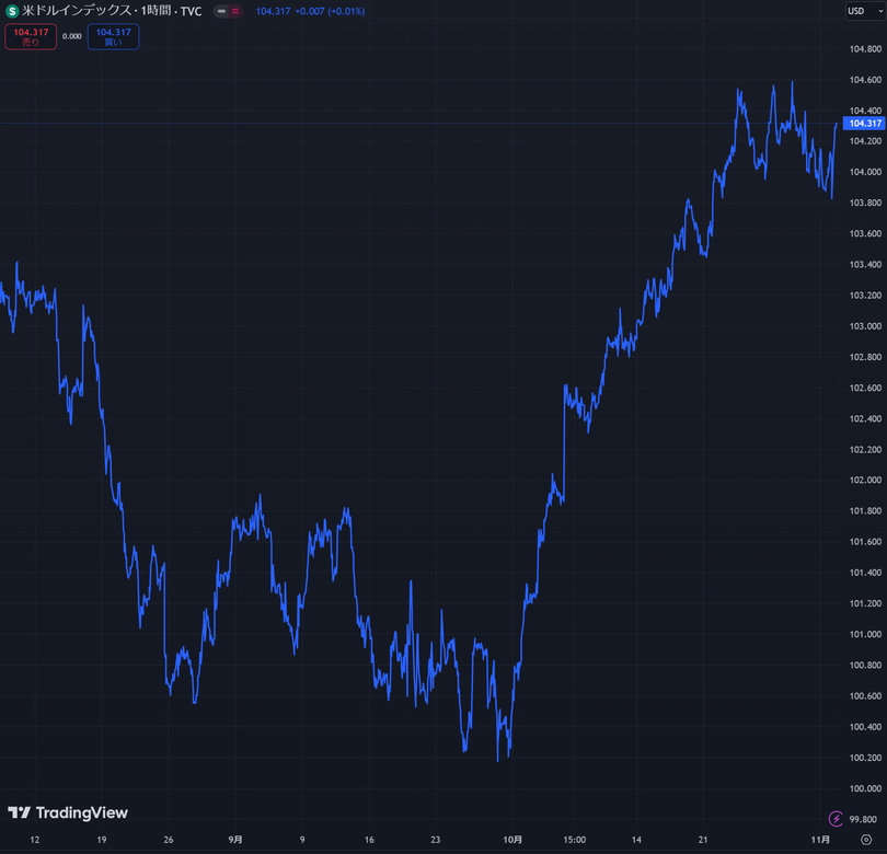 短期的な下落要因としては、米国債利回り、米ドル(DXY)が急激に上昇している点です。