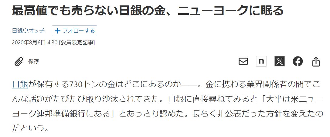 ちなみに日本も約850トンのゴールドを保有しているとされていますが、2020年の報道によると「大半はニューヨーク連銀にある(当時は730トン)」と認めてます。