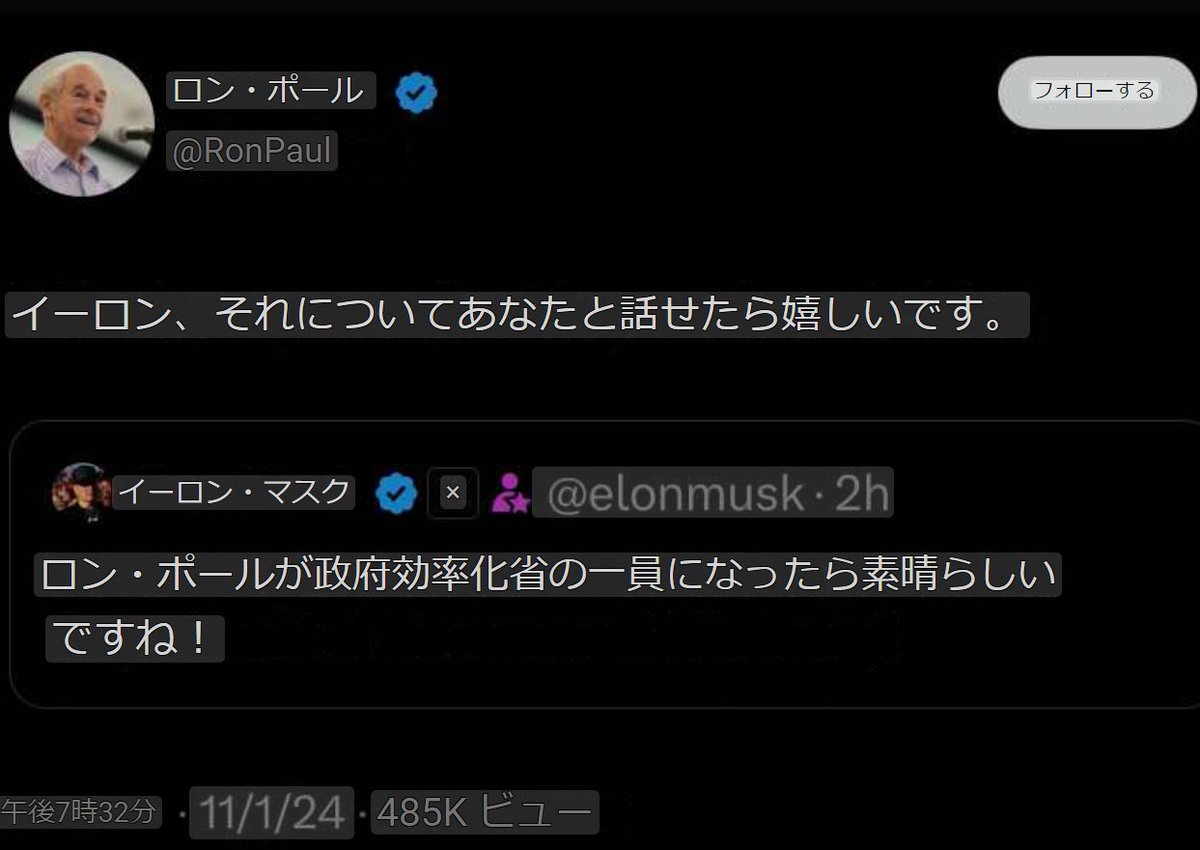 以前よりFRBの廃止や通貨の金本位制への回帰を提唱している、ロン・ポール元議員がイーロン・マスクとXで交流しておりました。