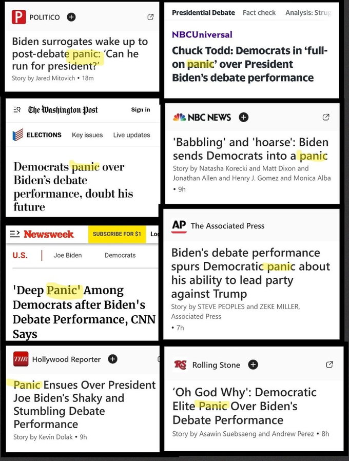 そして他のメディアに関してもまるで台本でも用意されていたかのように”民主党はパニックに陥っている”と報道しています。