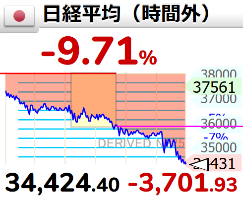 日本では株価が6%以上急落。2016年6月24日以来最大の下落となり、東証グロース250先物 ででは2回のサーキットブレーカーが発動されました。