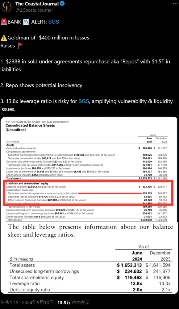 また、ゴールドマン・サックスが損失を抱えているのであれば、他の銀行が同じような損失を抱えていてもおかしくありません。