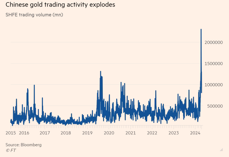 9,中国上海先物取引所(SHFE)の金取引活動が急増