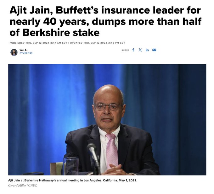 ウォーレン・バフェットが会長兼CEOバークシャー・ハサウェイ社のアジット・ジャイン(保険部門副会長)が、同社の保有株の55%を1億3900万ドルで売却しました。